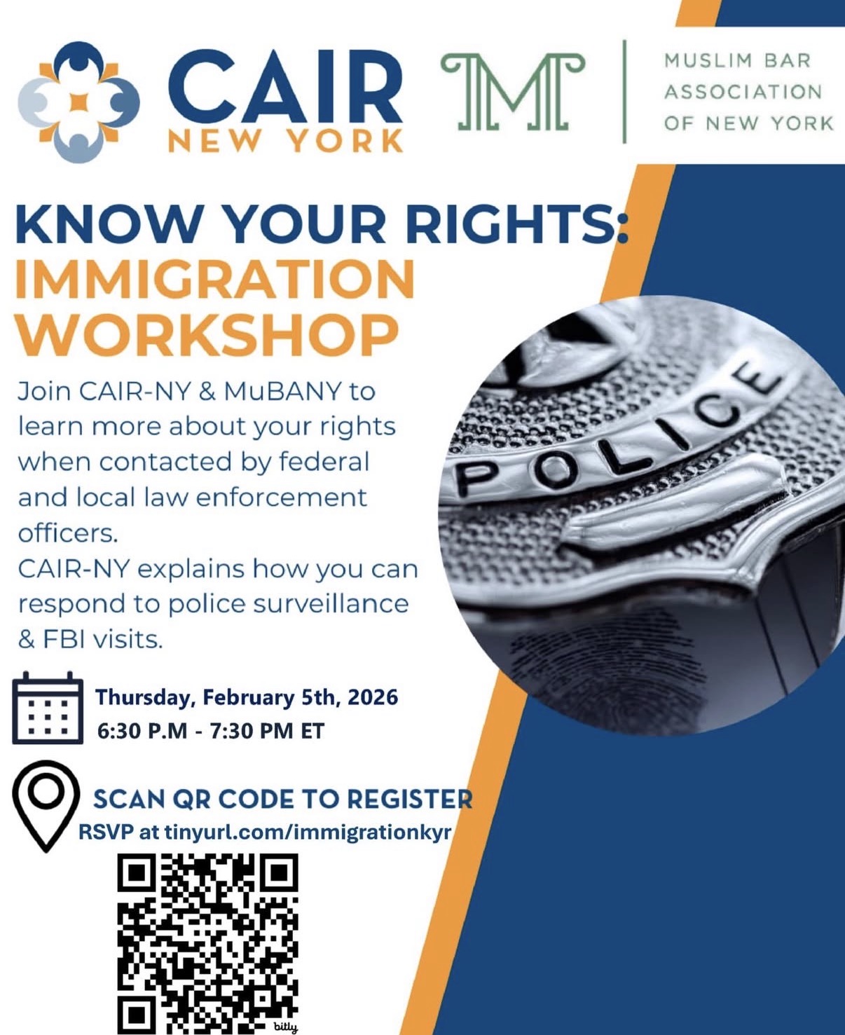 Join MuBANY and CAIR New York for a Know Your Rights session on February 5th!