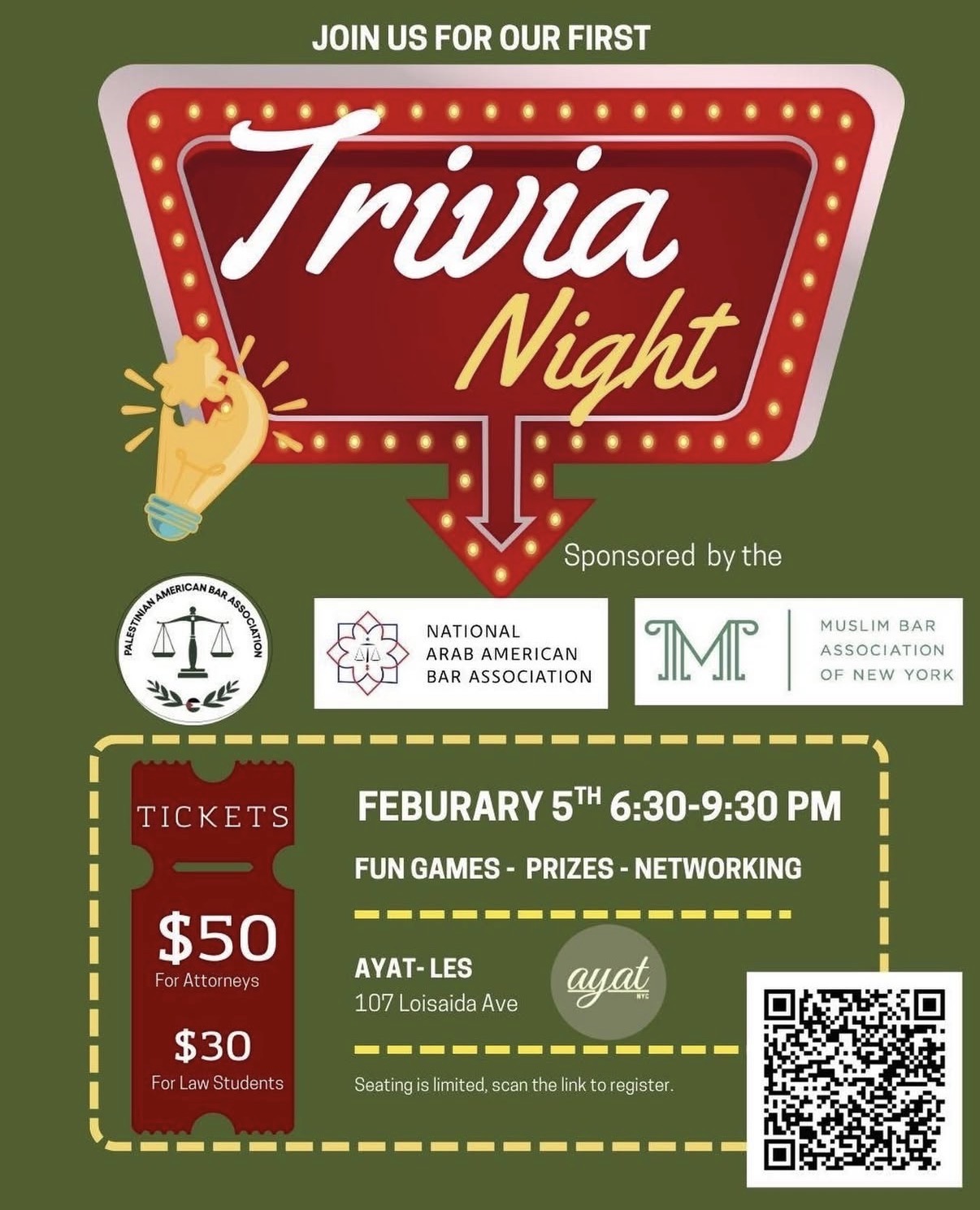PABA, NAABA, and MuBANY are excited to host our first-ever Trivia Night at Ayat in the Lower East Side on February 5! Register as a team or as a free agent.