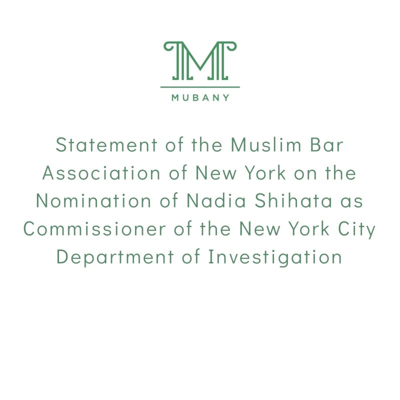 Statement of the Muslim Bar Association of New York on the Nomination of Nadia Shihata as Commissioner of the New York City Department of Investigation